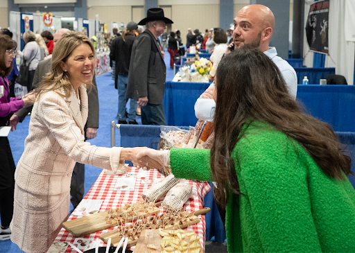 First Lady Suzanne S. Youngkin accompanied Governor Glenn Youngkin to the 2024 Virginia Food and Beverage Expo in Richmond. Sponsored by Virginia’s Department of Agriculture and Consumer Services, this biennial trade event promotes Virginia products and advances economic development by connecting Virginia specialty foods and beverages with industry buyers. Since first established in 1992, the ‘Expo’ is the largest marketplace devoted exclusively to Virginia specialty foods and beverages.
