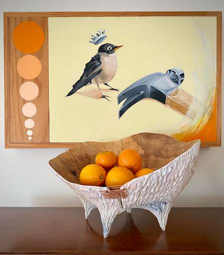 Chef and artist Edward Alan Gross believes “the worlds of culinary arts and fine arts are one in the same.” Serving Virginia governors for eight years in his role as Executive Chef at Virginia’s Executive Mansion, Gross whips up #homehistory every day with the ultimate goal of creating an all-encompassing sensory experience for those enjoying his artistry, edible or not. Working with a variety of mediums, Gross’ art ranges from vibrant oil paintings to breathtaking woodwork. Gross’ work has been shown at Art Basel Miami and Scope Miami, as well as locally in Richmond at 1708 Gallery, Gallery 5, The Art Experience at the Executive Mansion, and most recently, the Virginia Museum of Fine Arts. Currently on display in the North Ballroom of the Executive Mansion, this bowl carved of Tulip Poplar wood remains stocked with seasonal produce, picked out and arranged by Chef Ed himself.